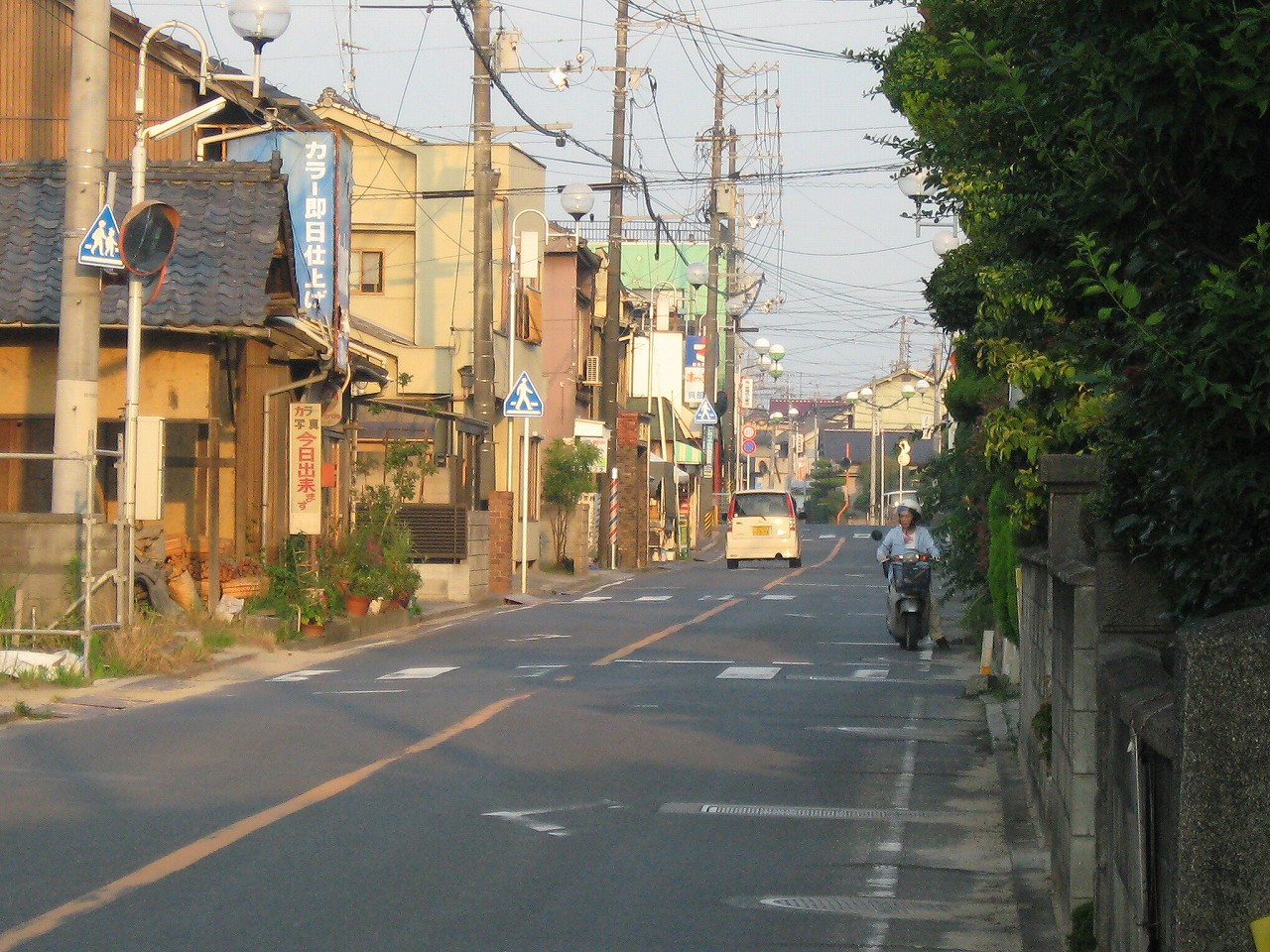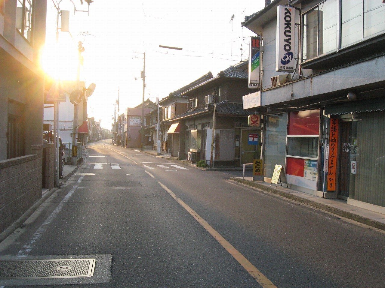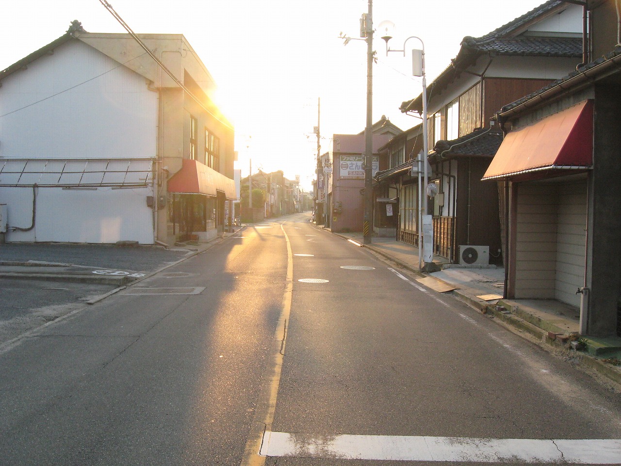 相変わらず細い道を経て、大通りに出る。さっき隣の駅で見た旧石州街道だ。やはり車道ぎりぎりまで商店などが迫っていて、昔薫り高い道路だ。ぜひドライブで走りたい道である。広島にはこんな感じで古い町が残っていることが多い。戦前戦後と発展してきたので、区画整理が追い付かないのだろう。