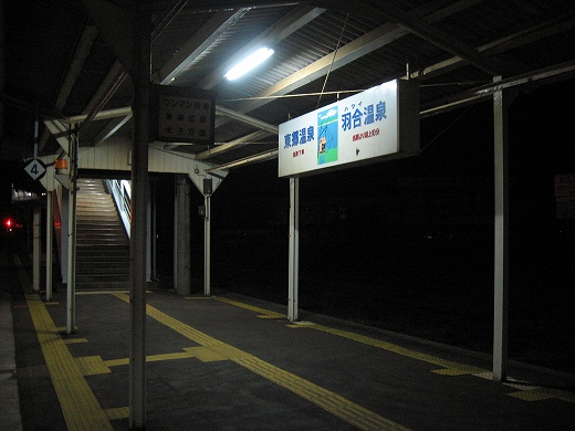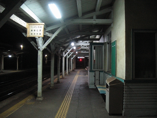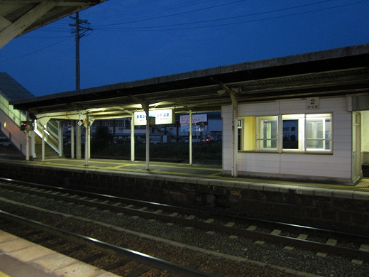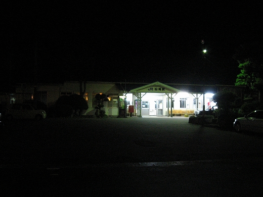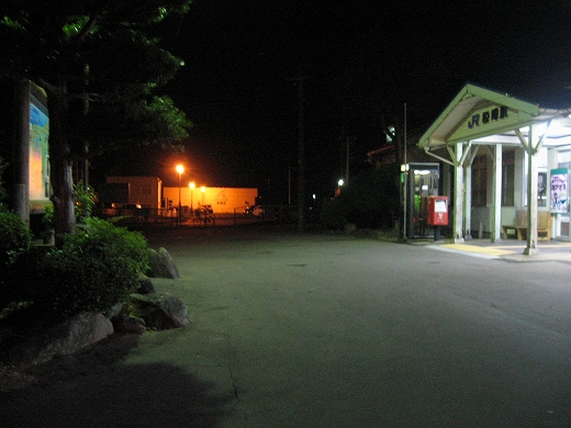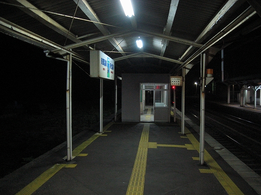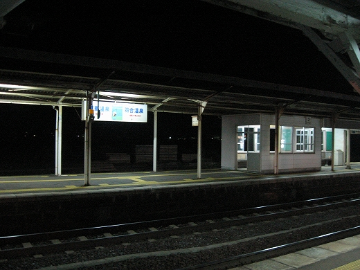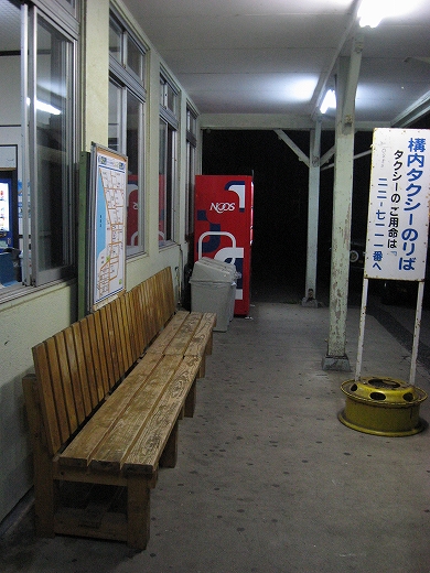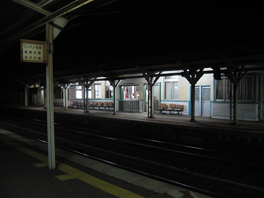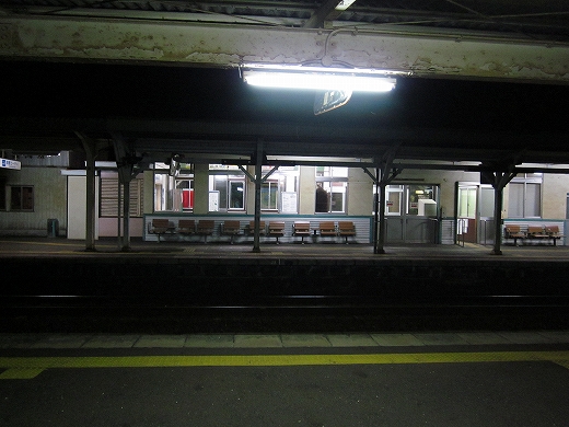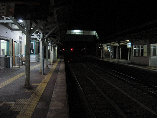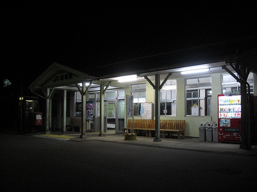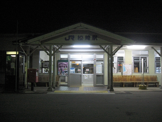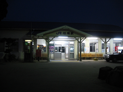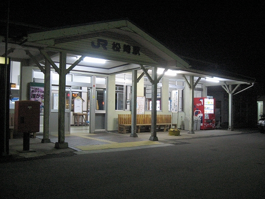 駅はすっかり蛍光灯がまぶしい。山陰も夜になるんだ、なんて思う。家ではみんな今日の分だけを買い物した中から海の幸を食べているのだろうか? テレビを点けながらのーんびりした話をしているのだろうか…松崎は中規模の駅だが、木造舎が残り、自販機も多い。そういう静かな夜の駅にいると、いろいろと想像が膨らむ。