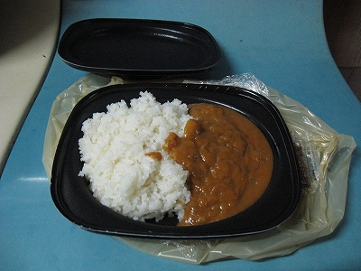 しかしまずいことが起こった。ごはんを増量してもらったが、ルーが2つあるのに足りない! おかげで白いごはんだけをしばらく食べることになった。ガラをゴミ箱に入れて想像上の婦人によろしくする。