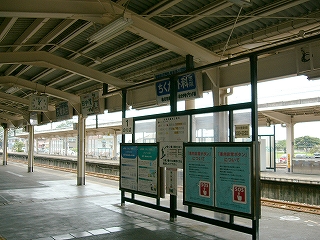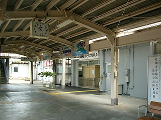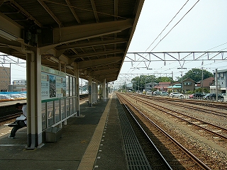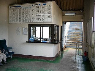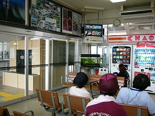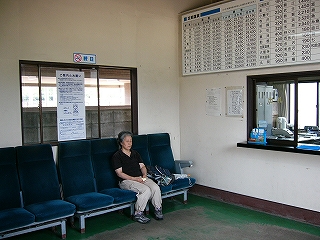 駅の西口はただの小さい別棟で、どうもなかったが、中にはしっかり出改札口があり、駅員が一人常駐していた。しかも構内放送はここで行われているらしい。特急座席のある待合では婆さんがこの暑さのせいか放心したように凭れていた。ここもけっこう暑いんだけど…。
