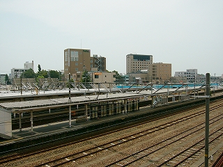 駅の前にJR発足の記念碑や蒸気機関車があり、ここは鉄道との縁が深いところらしい。松任工場と関係があるのだろうか。