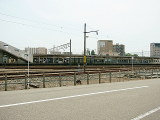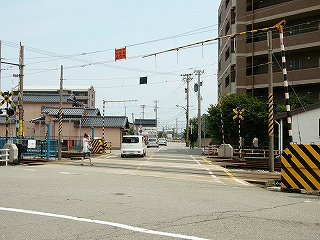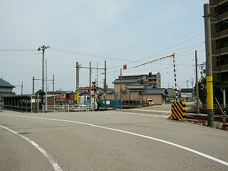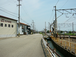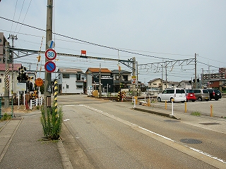 駅裏へ回ろう。展示の蒸気機関車のあるレンガ敷きを歩いていると、小さい美術館や道向こうに古刹らしい寺院などがある。駅前でもけっこう時間を使えるところなのかな。やがてレンガも消えて、消雪パイプのある松任のごくふつうの通りに出る。広い踏切があった。 北陸特急には交流架線張る、広い踏切が似合う。渡ったところは水田の広がりを感じられ道も広くて、余裕があった。特急の車窓から、こんな風景の要素を幾度か見たことがある。今、そこを歩いているんだな。それは地元に強く固着された時間だった。