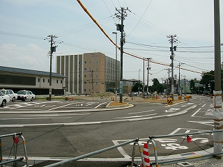 工事中のためか電柱がロータリーの真ん中にどんと立っている。