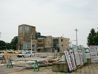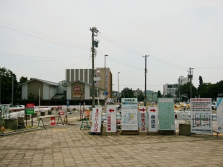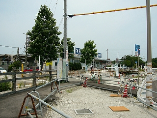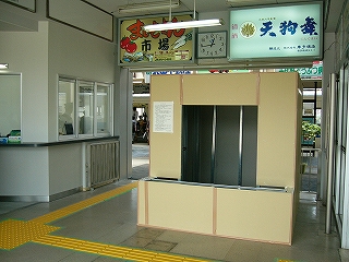 駅舎前。スロープ取り付けの工事を終えたばかりらしい。