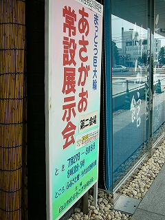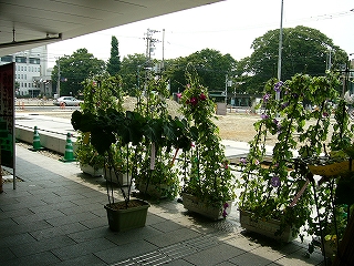 あたり一帯は工事でもあったし、もう駅前へと戻ろうと、来たときとは違う駅前北寄りを通って駅へ向かっていると、新しい建物の軒下に入ることになったのだが、なんとそこは白い経机の上に大輪の見事な朝顔の並ぶ展示場となっていた。みたこともないような立派な朝顔。もういうまでもなく加賀千代女のあの句が効いているのだろう。はじめ松任にはあの句しかないのかと思ったが、その一句を受け継いで、松任の人が夏を前に一つ一つ朝顔をお世話して、こうやって飾るのが風物詩らしいのは、決してここにはただその句しかないという、有名句と縁地が皮相なものではないことを、はっきりと感じさせた。句碑ならどこにでもあるではないか。