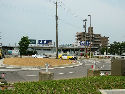 駅を出て右手の風景。昔の敷石が在りし日の駅前風景を物語る。