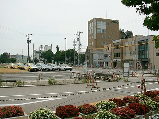 蒸しっとする駅前に出ると、駅前は工事中であった。いよいよこの駅もつぶすのかと思ったが、ただの駅前整備だと後で知る。駅舎はほかによくあるかたちだったが、印象に残りやすいものとなっていた。ここに降りた人なら思い出すのだろうけど、松任駅との表示が、緑色だった。松の緑、松のある海が、思い浮かぶようだった。陸屋根のこの建物の色も灰青色で変わっている。