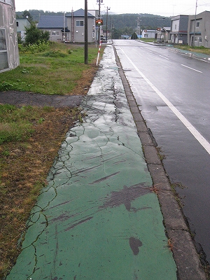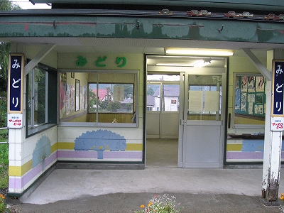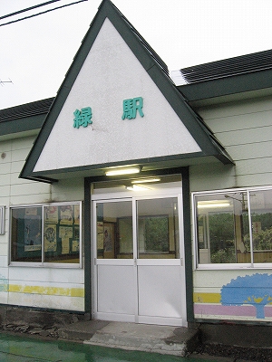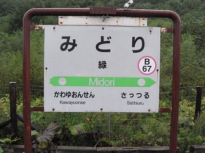 おもしろいのはやはり、みどり、という名だけあって駅前や町の歩道に緑のペンキを塗りたくっているところ。やはりそうしたくなるかという感じ。我々はこういう根拠ある設計、装飾、命名をしてしまうことに対し、たいへん弱いな。もちろん集落内のほんとうにきれいな木々や芝生と調和していてわるくはなかった。ちなみに駅名表示も緑色でみどり、となっていた。あくまで、何かしようという際にも、根拠がなければできないのか、或いは根拠のなさそうな表現は理解を拒むのかという私の個人的な悩みが少し頭を擡げただけだ。