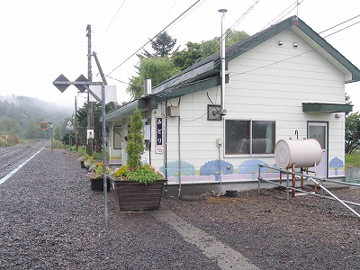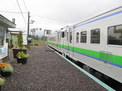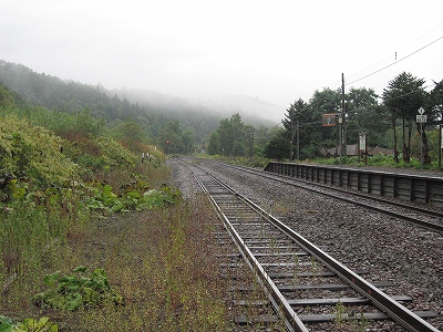 さて、ずっと気になっていたのだが、これからこの駅始発の列車に乗るというのに、今も列車がない…つまりここは夜間滞泊などなく、知床斜里あたりからここまて回送して営業をはじめるようだ。滞泊がないのは駅舎を見てだいたい想像はついていたけど…。しかし北海道のことだからこんな駅でも駅務室を改装していて、運転士が一晩寝そうな気もした。それに乗り場は折り返し設備として再整備されているからね。