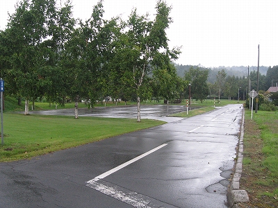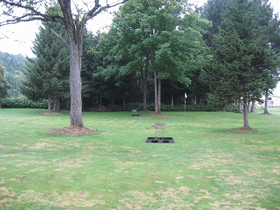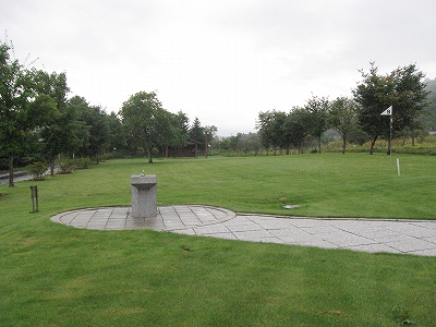 こうして辺りは妙にきれいに整備されていて、コテージ風の建物があったり、パターゴルフの芝生が眩しい。しかし昨夜同様、人の気配がまったくない。ホームから小さなスキー場が見えたので、例の湯と合わせて清里町の観光戦略なのかもしれない。