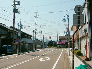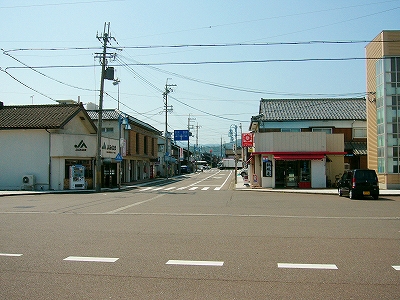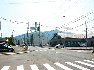 美浜駅の交差点。付近には関西電力関係の建物がいくつかある。