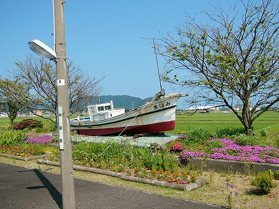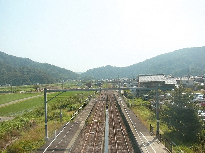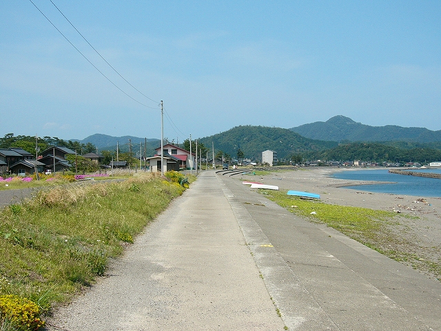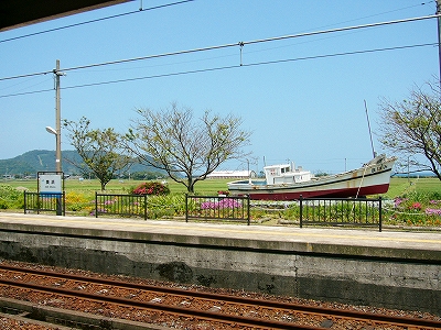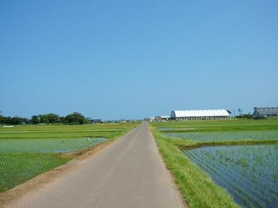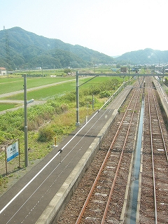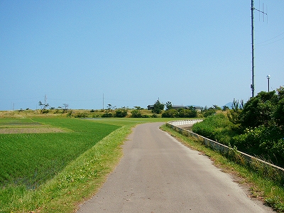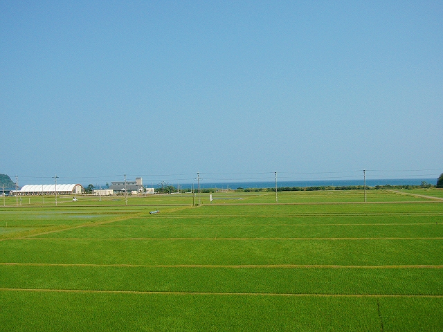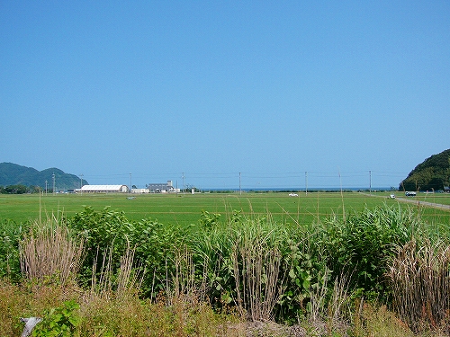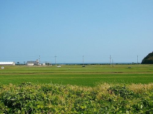 「海までけっこうあるな」と、熱くなりすぎた頭髪に手をやりつつも、さっさと 農道を歩いた。それにしても大きな駅の周辺に入る地点だけに、何もないというのは、こういうことをいうのか、と初めて知った気がした。生きるためだけのものしかない、というほどの、峻険な風景でもないけど、見たいと思って来たところの風景がこんな緑と青だけだと、旅行中という身もあいまって、頭の中が真っ白になるようだ。米と魚、それしか思い浮かばん…。