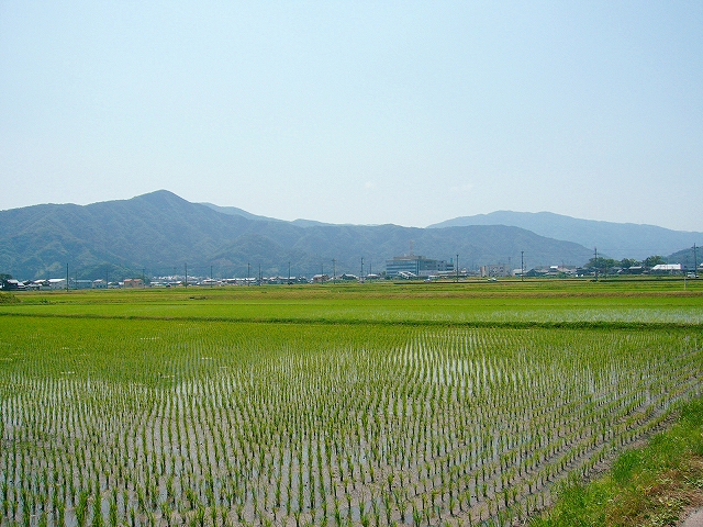 踏切を渡って、平原を歩いた。気温はまちがいなく30度近くあり、稲の苗と張られた水が白に煌めいて、むやみに日光を反射している。その先には海があり、振り返ると山に囲まれていたから、いかにも昔の氾濫原らしいところだった。