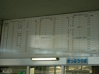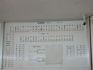 運賃表。小浜線内ではこの色使いと字体のものをよく見る。