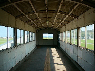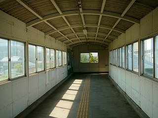 海に突っ走る跨線橋内。