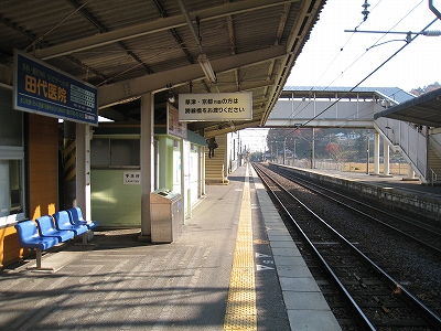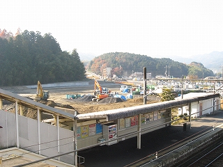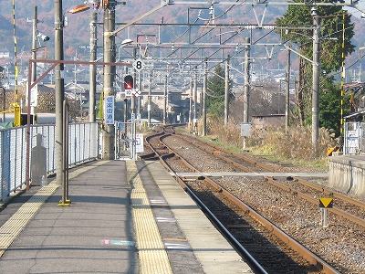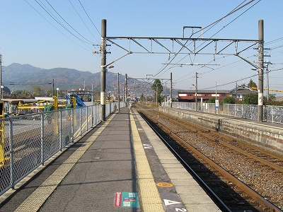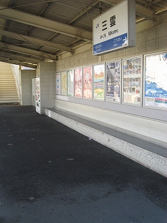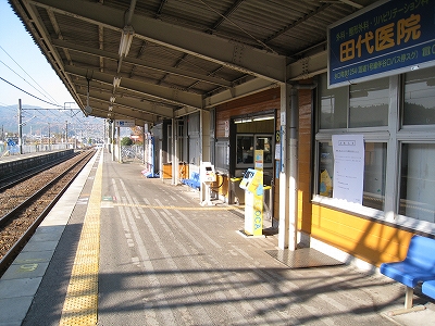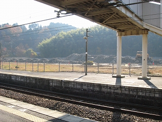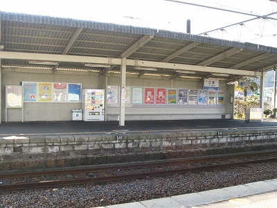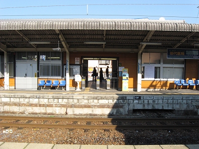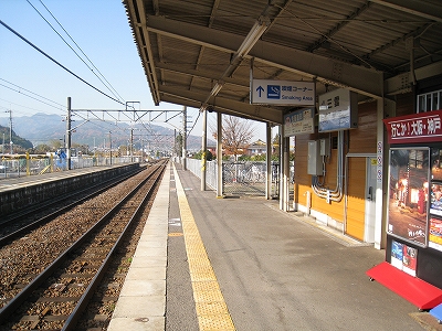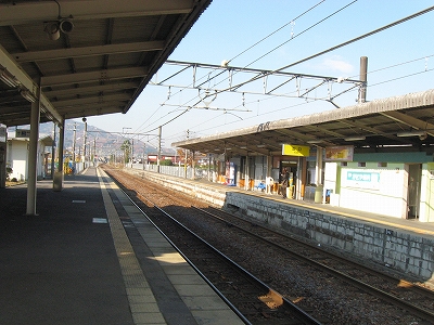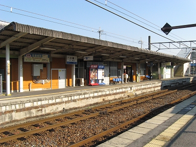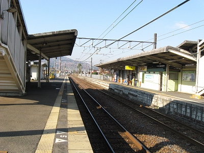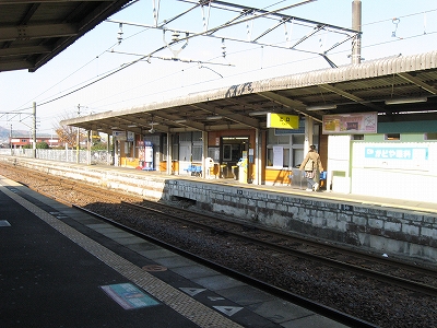 なかなかきれいな地名を冠したこの駅は、その表記からすると人少ない地にどっしりした木造舎がありそうな感じだが、降りてみるれば貴生川までとは違い、ホームと地続きにある冬光のさす改札所で窓開けさせて相談する人や、ふいに御厠に吸い込まれる人など、人影がしばしば目に付くし、構内は駅舎の茶色のペンキや薄みどりのブロックの壁が明るく、そこはかとなく開放的だった。裏手が広大な更地で工事してるのはどうも虚ろで飲み込めなかったけど、何か建つのかもしれない、と思い直したのは、跨線橋からちらっと、駅前と町が近接している濃密な光景に目を見開かされたからで、それでふと、この駅から出るのもまた、妙に楽しみになった。