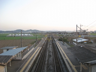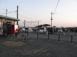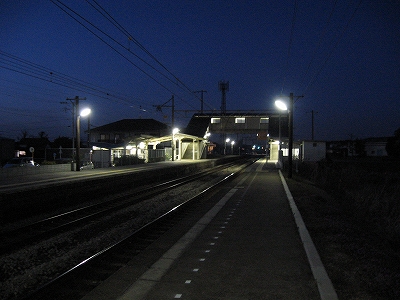 もう日もくれにけり。駅舎から見た風景。