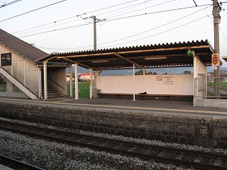 ぱきぱき音のしそうな簡素な建て替え駅舎だが、ここ独自なものではなく九州各地にあるものだそうだ。傍らのトイレは使用中なのがよく見えるひどいもので、しかし、これが、新しい。佇むそんなトイレを夕暮れにじっと見つめていると、駅舎の簡素であることに、自然と説得力を加え、新しくても本当にこれら最小限がふさわしい駅なのだと思われてきて、このあたりの集落がつつましやかな暮らしであることを生々しく思い浮かばせた。
