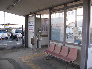 下りホームの待合所。珍しく長椅子。