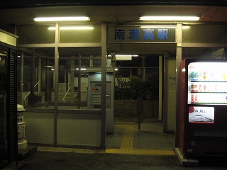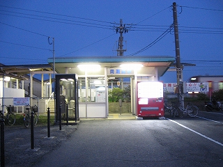 宵の南瀬高駅駅舎。
