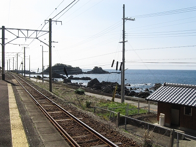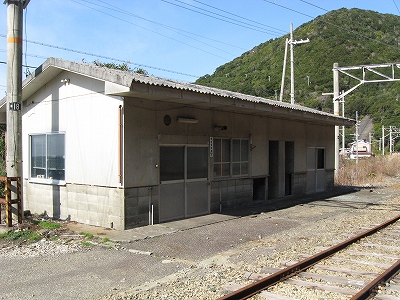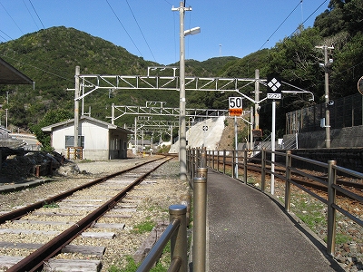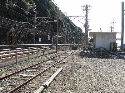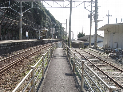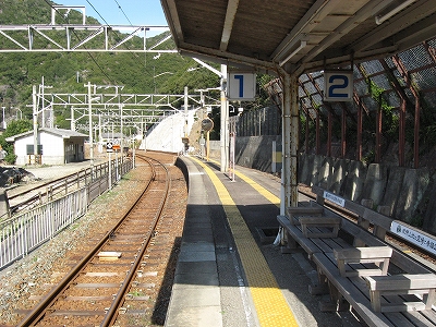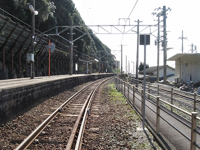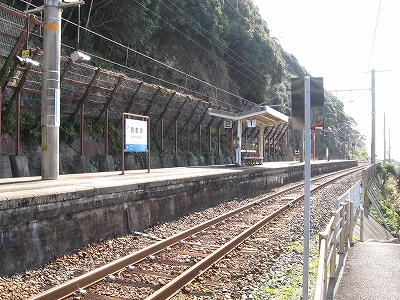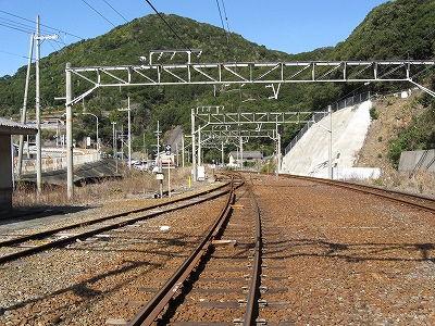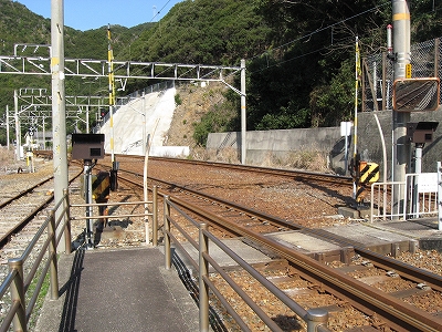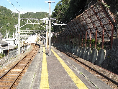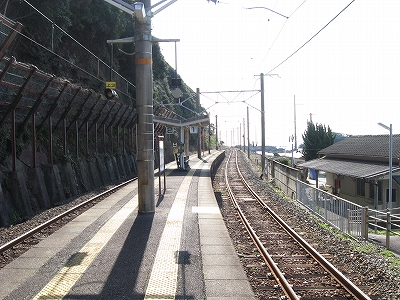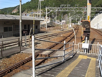 列車が消えて視界が自分のものになる。改めてホームを眺めると、大海からすれば平均台のように細く、後ろは山崖だった。それでも国鉄らしく、カントの付いた狭軌で、ホームも長いのだった。
