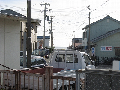 そしてふとした瞬間にまた、間口からの海色と止まれ標識のある町が目に入ってきた。