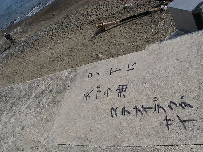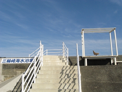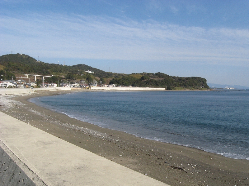 どうにかこうにか三輪崎漁港に着く。人は自分以外誰もいない。新しい足湯があり、砂漠の中行き着いた泉のような爽やかさを感じる。この気候の温暖なところに温泉が湧くのだから熊野は別天地だろう。しかしここはよそ着の観光客が来るのだろうか。ドライバー目当てでもない。そのあたりは一応海水浴場らしく、バラックの更衣室があるが、この季節に訪れる人がいるわけもなく、静かだった。浜も黒土で、ほかによさそうなところが見つかりそうだった。