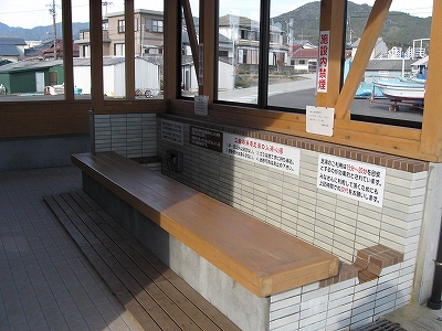 戻ると時間はちょうどよく、次発まで二十分ほどだった。ちかくにおでん屋があったが入る時間はなさそうだ。椅子に座り、間口の方に首をひねりつつ、潮風を喫んでゆっくりと時間を過ごす。木の座面は罅が入っていた。