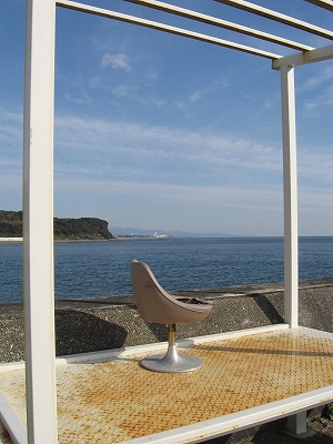 途中、防波堤の上に四阿と回転椅子があるのを見つけ、嬉々として立ち寄る。私はそれを遠慮なく老人呆け促進椅子と名付けて海を見渡す。