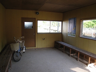 駅舎は小さいが、長椅子の長さは十分。