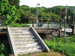 ホームへの階段。新しいようでかなり傷んでいる。