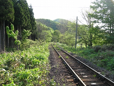 夜の森はもうそれはたいそう怖かったけどこうして朝になってみれば何でもないほど親しみやすく、列車は針葉樹の山裾に沿いつつより深山へと進んでいった。道南には杉林があるのだが、内地で見慣れている者にとっては別に自然な光景だった。