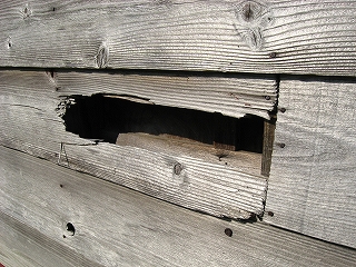 駅舎の板壁の様子。中空になっている。