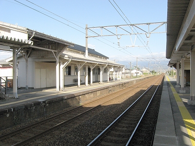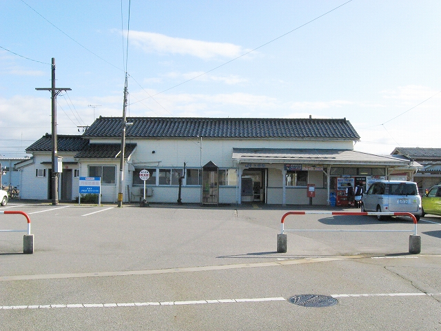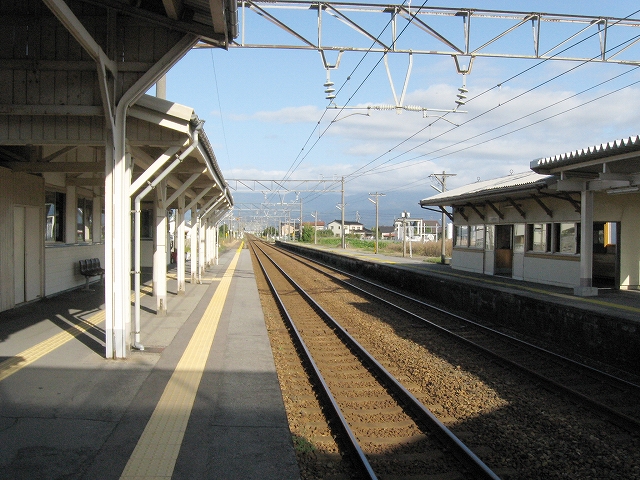 東富山とここは隣どうしで木造舎を擁しているから双子みたいだと思っていた。けれど、ここはより立山やその風を感じやすく、ただただ廃された乗り場に薄が群がって、しみじみと寂しかった。北陸本線はこれからもただ一途に東へ東へと目指すが、この時間はその東に冷たい空と傍に立山の存在を感じさせるのだから、寂しいのは当然だった。それでまだ先に滑川や魚津の控えているというのに、泊が思い浮かんでくるのだった。あたりは新しい家が多いが、集落自体は形の整ったものとして以前からあるものらしく、水のようにさらりとしている。駅も一回り大きい、そこから数えてやや小さいうというもので、背後に偉大な山や風を感じさせるだけに、かわいらくも見えた。