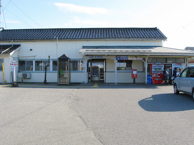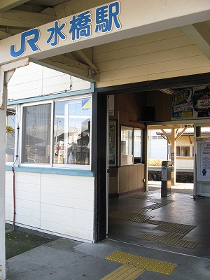 水橋駅の表構えは村の駅の趣で、駅舎の前にいながら水郷を思い浮べた。地図によれば川に挟まれた地域だからそういうことはあってもよかった。駅といったら出たら少なくともしだいに街が広がるか、遠かったとしても駅が川向うなどにあってその位置がしかるべきなことが多いが、たとえ汽車駅で構造物が大きいからと言っても、ここは小さい方に入るし、そうなると駅の捉えられ方は、また異なったものとしてここは経過しつづけてきていそうだった。しかし運よく、高校には近いということだ。