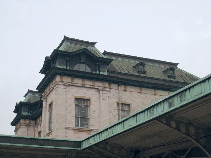 そしてときとぎしながら、駅から出て、駅舎を見上げた瞬間、手に持っていたものを僕はすべて落としてしまった。細かに妻が造作された銅葺きの洋館は緑青を吹き出し、薄桃の木壁は当国式。権力と均整美におおわれた圧倒的な洋館で、なんともいえないその空気感に、気おされた。