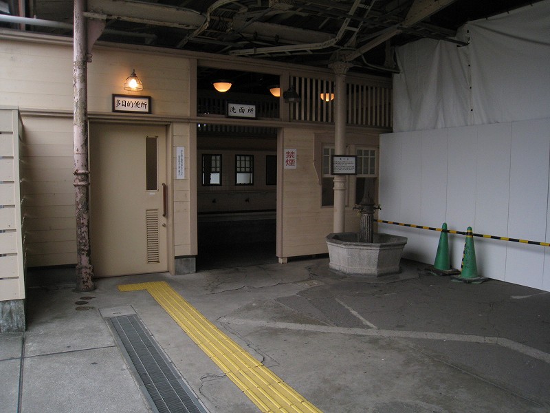 こちらは洗面所。独立しています。おそらく汽車の煤煙で汚れることがあったからでしょう。かつての大駅ではホームにも洗面所がありました。