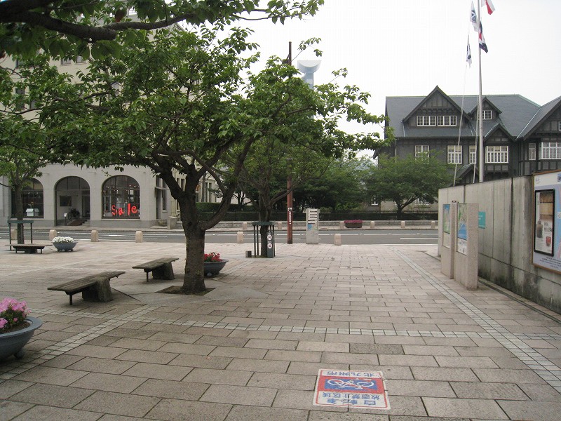 門司港エリアは石畳の道がとても多い。真夏なので暑かったなぁ。
