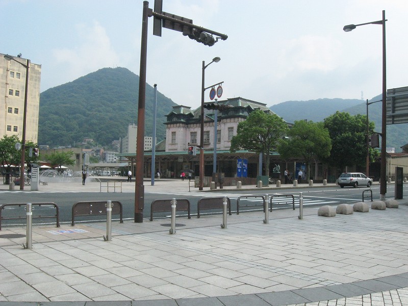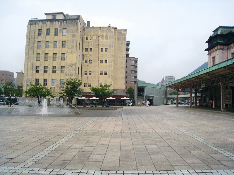 ここを入っていくと、門司港駅のロータリー。駅前に噴水があるので変則的な形です。