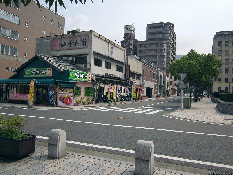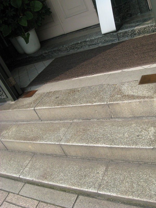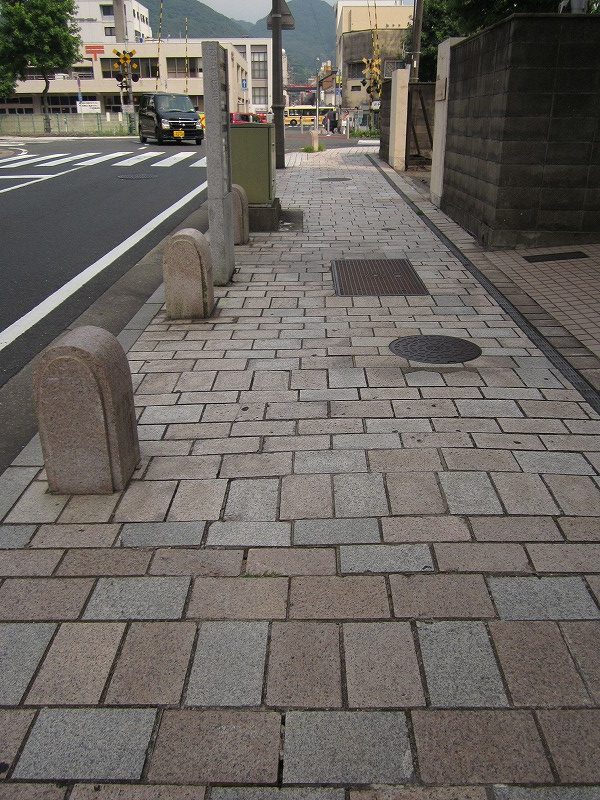街角にて。こんな石段にも戦前の面影があります。小倉が原爆投下地に選ばれていたのには、八幡、若松、そして門司港も狙っていたからなのでしょう。
