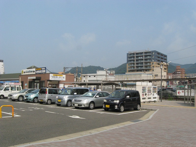 ロータリーにて駅側面を。右手は駐輪場。