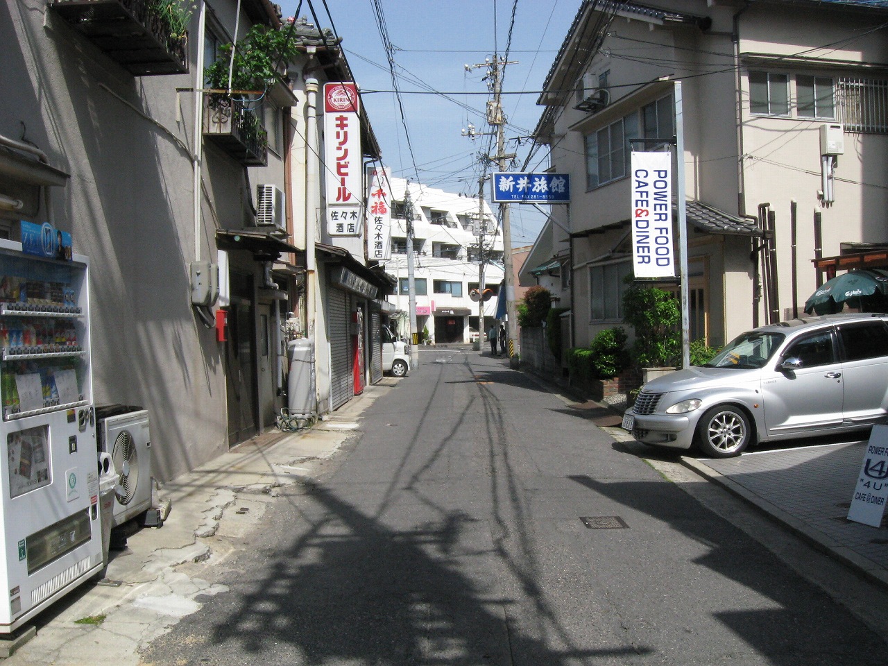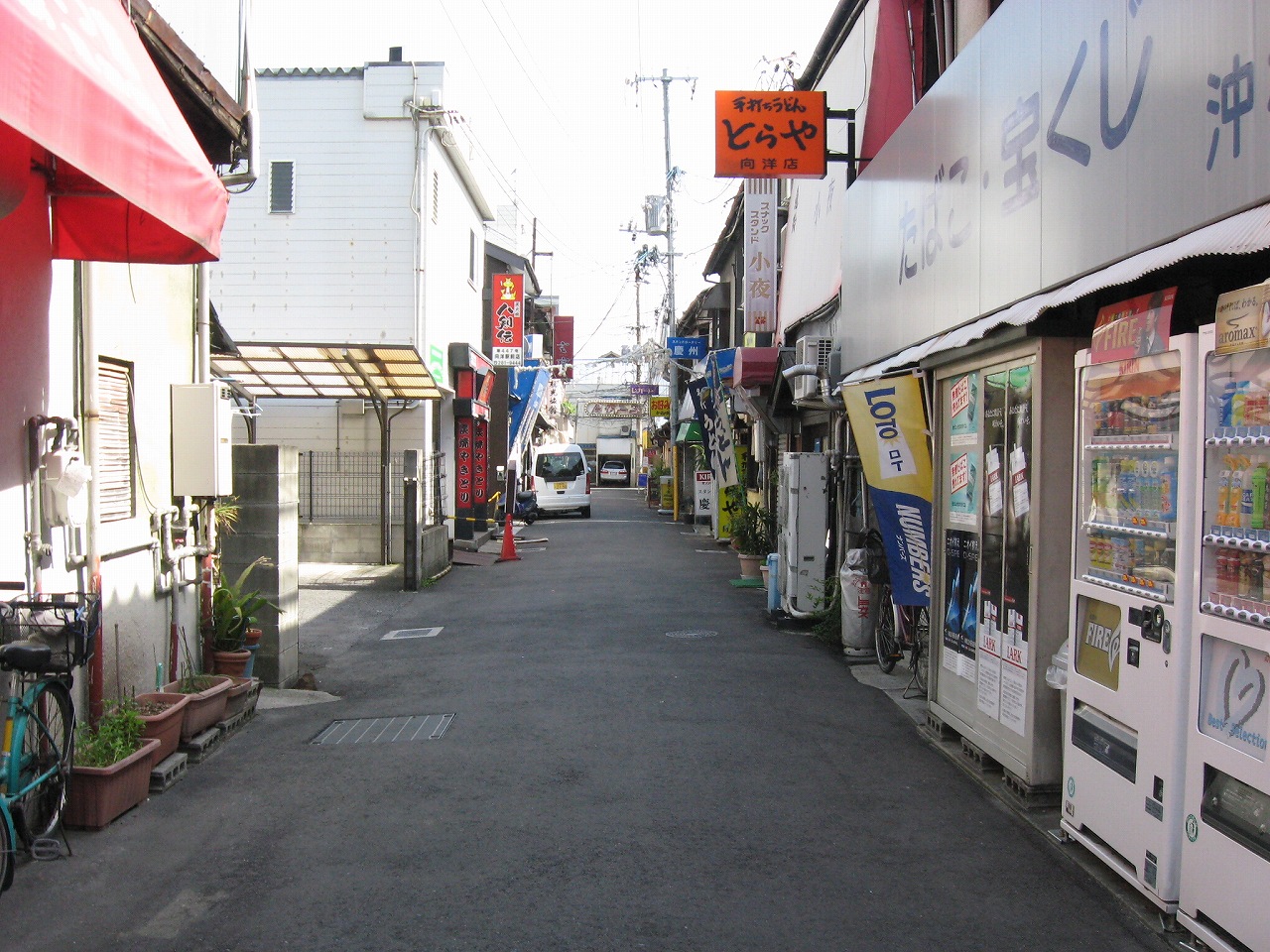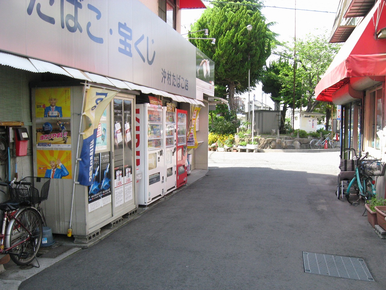 たばこの自販機もこんなとこにあって、もはや絶滅危惧種的光景