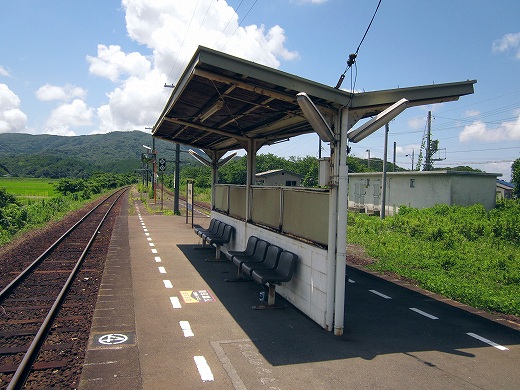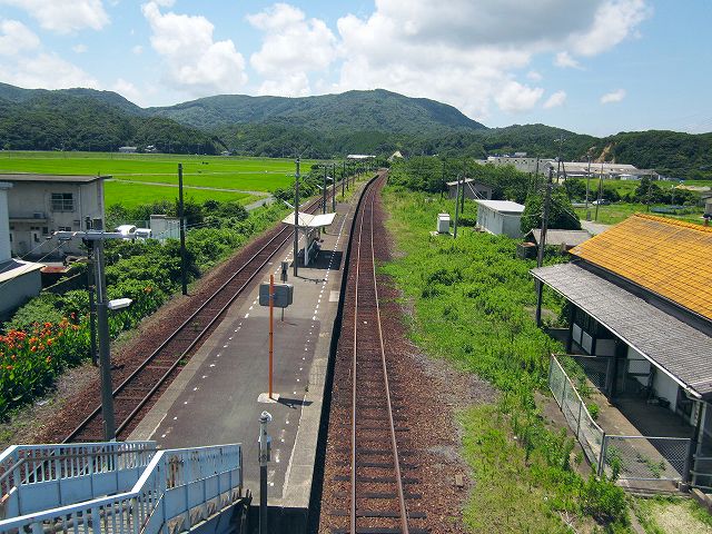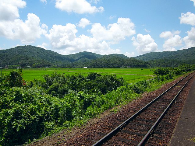列車が去ったとき、二人は跨線橋にいた。周囲を見回すと、なんかやたら緑な水田が広がった、山々に取り囲まれたところでだった。ケンが、