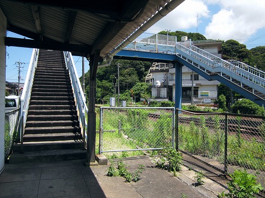 階段を下りつくと雑草だらけの中に木造りの信号操作室が見える。無人化は最近ではなく遥か昔のようだった。