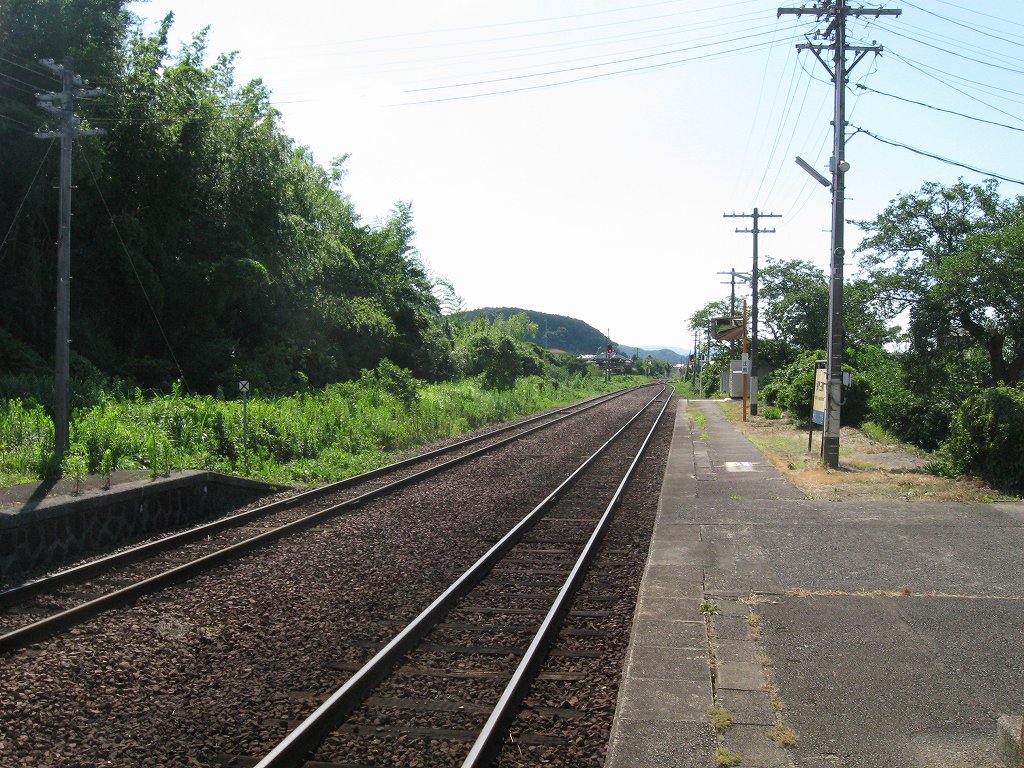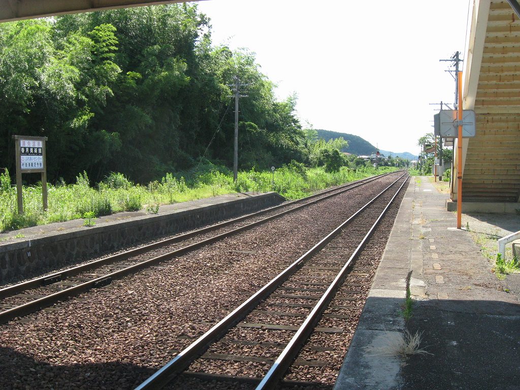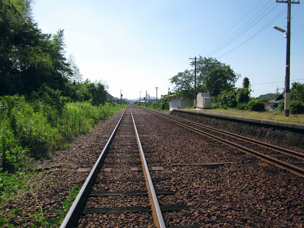 山越えを果たすと、気動車は惰行で、カタンコトン、カタンコトン、カタンコトンと少しずつ運動エネルギーを増加させている。風景が開けはじめてこういう音を聞くと、わが汽車は乗り切ったんだなといつも思う。そしてそこが長門三隅だった。