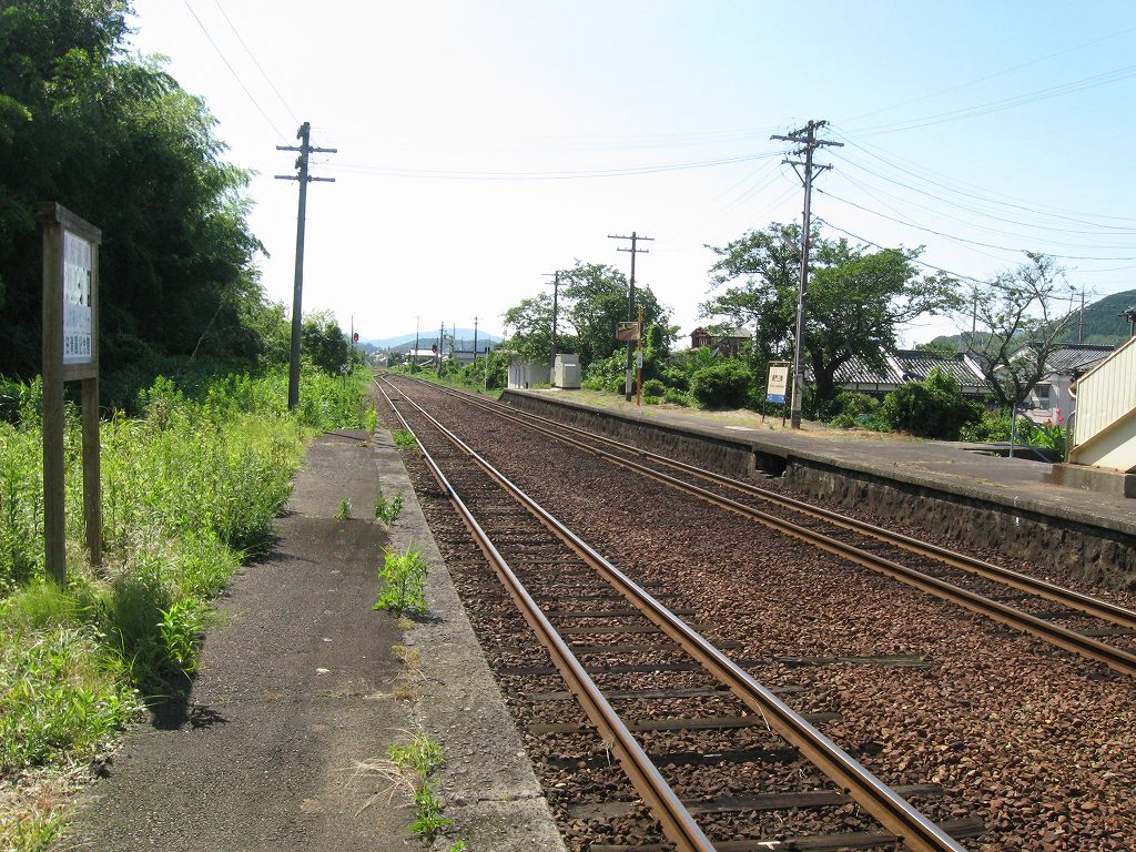 そんなとこに降りた自分もどうかしてるけど、こうした台詞を吐くのも、また旅の楽しみだった。旅人は審美を振りかざす傲然さがあるというものさ。でも3キロほど先に湯免温泉があるとも駅に出ていたので、ここに降りて向かった人もいるかも知れない。