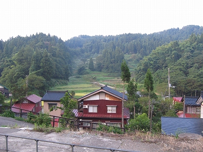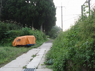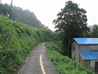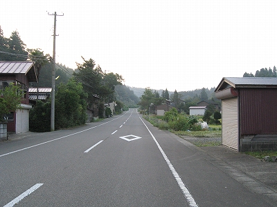 車の登ってこなさげなセメント道を足をトウ・シューズ履いたみたいに尖らせて坂をしばし下った。駅舎は軽量な工法のものでサッシフレームのパキパキだ。もうさっさと駅を背にして坂をおりながら、雪国なら屋根軽いこれがいいのか、それとも柱の耐雪は駄目なのか、いやこの部落の各戸にはこれと同じ材質の前玄関がついている、さすがだ、なんて荷物をどんどん揺らしながら考える。でも山から下りるってほどでもない。駅でてすぐそこに二軒くらい人家にまみえたわけだし。乗り場が高いんだ。最近嵩上げまでしたので余計に。あそこはコンクリートが中空に浮いているかのようで地に足が付かない感じだ。高くするが危ないのか、でも乗り口をシームレスにするか? こんな考えは別に放置されし停車場が欲しかったからなんてことはなくて。たぶん。枝道はありそれが不思議の探索心を下りてく私に眼で一時確保する。さあてこの道脇のみどりもあと数か月で見納めなのかと思いつつも、長い秋の端緒をまさに射止めている意識だった。短いながらやがて本道に抜け出るけど、人家は僅少、走行車すらない静けさ。道の真中を堂々と歩け、立ち止まり、伸びゆく道の行方に眼を凝らしてみる。長岡と柏崎を往来するのにいくつか峠があるけど、朝でこうとなるとこの塚山峠は今は走られないようだ。新潟らしくいい道ゆえの判じずらさというのがありそうだけど。地図では鉄道とて越後広田から急に進路を変えて山に分け入っていて、主流の感じはなかった。やはり8号線なのかな。