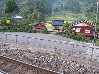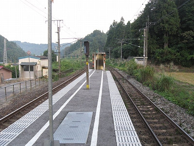 こうして少し山に入るだけで豪雪らしくて、車庫や倉庫はかまぼこ屋根の新塗装、丈夫なものが並んでいるのを見つける。しかしこの駅から本道に出た感じ、半家駅に似ているなあ。そんなこといわれても知らない人は困るけど、これだけ降りていると心地よい近似が働いてしまって。飲み物の販売機があるのに驚喜した。とりあえず乾きは癒やせ生命は繋げると。