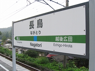 北条、越後広田など進むにつれて何もなくなっていったが、わりかし拓けている。それで山は深くなったがそれほど長引くものではなく、車窓にはこんな一面もあるものだろうと思うころ、これまでの小駅と同じ声の調子で長鳥が案内された。降りるとなったら、緊張が高まった。だってこの刻にここで降りる人はいないだろうし。ともかく意を決して、車内から外に出る。まだ昼は暑いころの朝冷えの空気に、細すぎるプラットホームが薄を添え山裾の高台に位して数軒の小部落を見下ろし、停められた電車は、不機嫌に唸っている。その剛性の体躯の馬をなだめすかすように、車掌は笛をくわえて、掌を電気馬の脇腹にあてる。笛がピイッと厳しく谷に響き、車掌は足を軸に頭で短い円弧を描くように、自らの体をその剛性の体躯に嵌入させる。