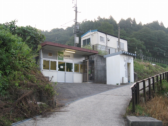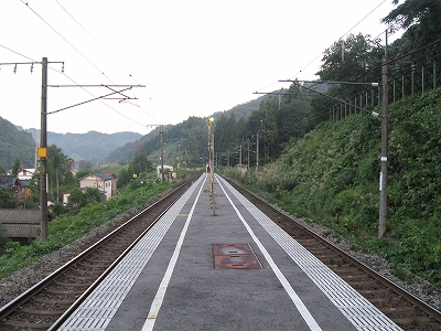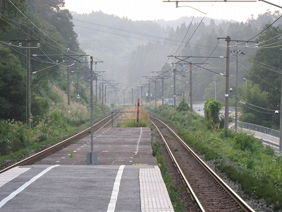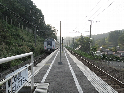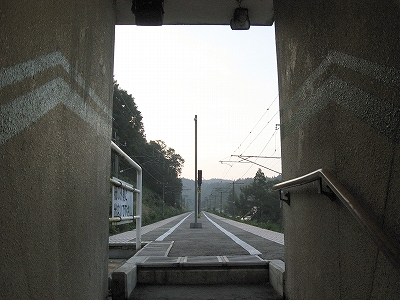 ともかくこんなに山深いとは、思わなかった。そのことにただ驚き、腎(むらと)の底が浮いて揺れ動くか、何かに掴まれたように感じた。それはプラットホームの高さのせいもあった。どうにもここは、峠であるらしい。それで選んだのだろうとはいえ、これでは本当に急峻な山裾だ。前後の駅とだいぶん違う。うわぁ、高いなぁと独りごちながら、通過のないうちに狭い落っこちそうなホームを歩く。鳥のさえずりがよく捉えられた。杉林が薄明るい空を刺し、民家が底に静まっている。